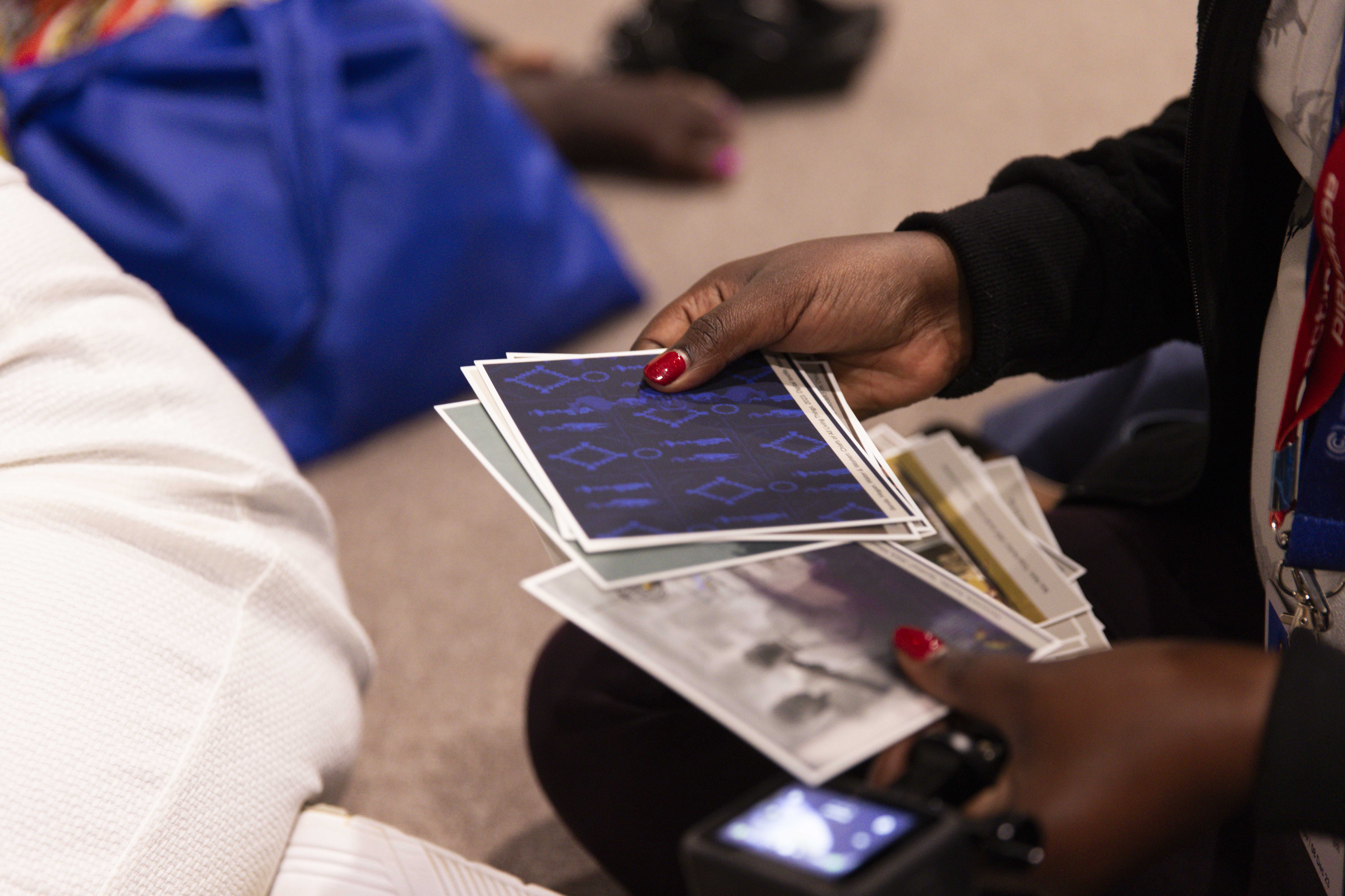 To grab attention of negotiators outside of multilateral meeting rooms, the community hosted an art exhibition and created shareable cards with art and policy messages.